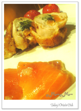 手前にあるサーモンと後ろのプチトマトはマリネにしてみました。